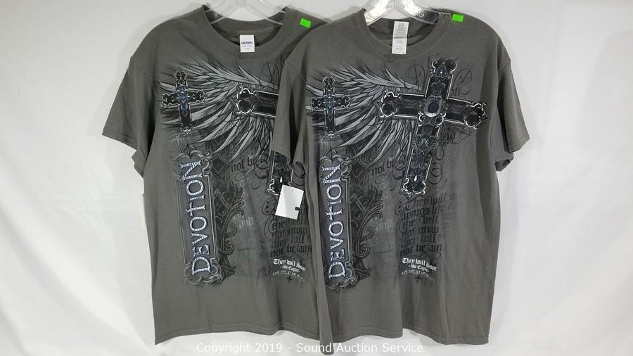 Item Description: Sokool hooded taupe shirt, Guess black shirt, 2 Gildan cross print graphic shirts, and Dakota shirt. All in excellent condition, some with original tags. All items come from the set of Get Shorty at the conclusion of filming Season 3.