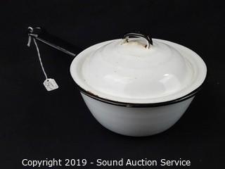 Item Description: Skillet, pots and lids. Pots are all small sauce pots. Lids are 6" and 9" dia.