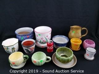 Lot #0128: 19pc Ceramic & Pottery Planters & Pitcher