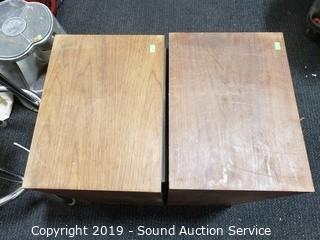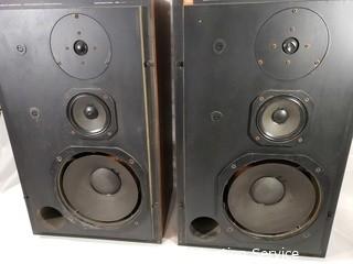 Item Description: Subs are blown, have the speaker covers, some dents in the cones. 23-1/2" H x 14" x 11". Some scratches and general wear to the finish.