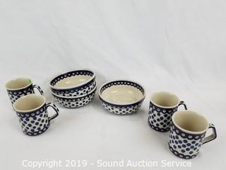Lot #0147: 21pc Boleslawiec Hand Crafted Polish Dishes