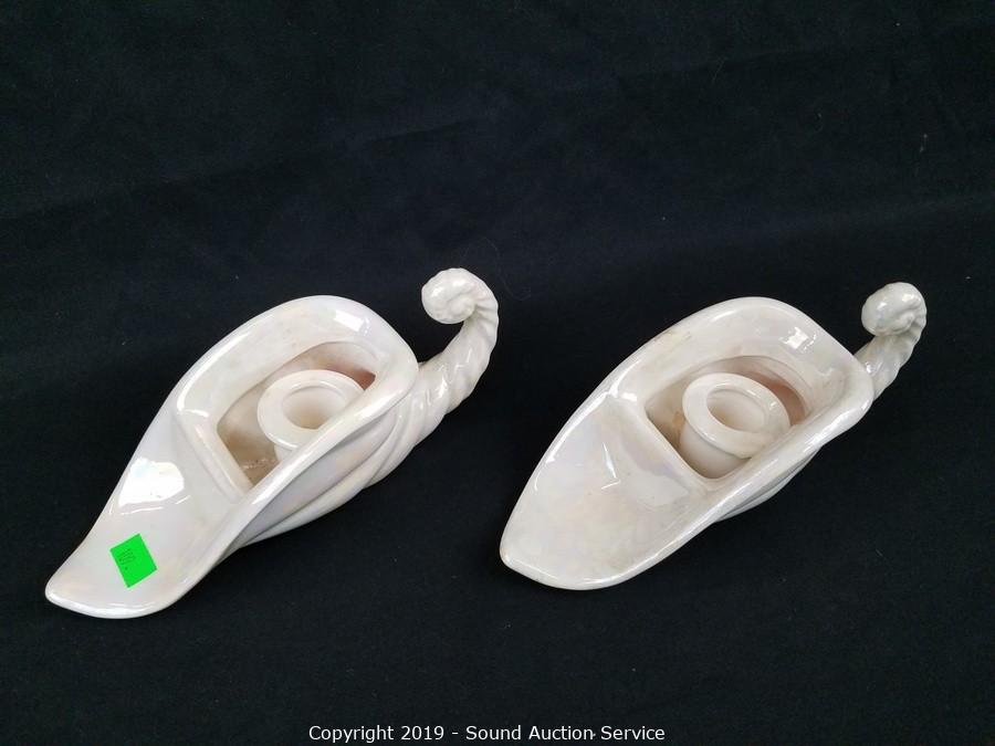 Lot #0109: 3pc Opalescent Lusterware Cornucopias