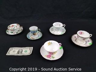 Lot #0110: 5 Fine China Teacups & Saucers