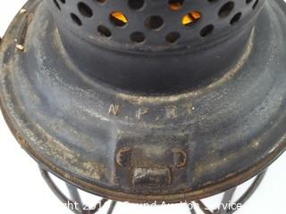Item Description: Orange glass. USA patent, made in Canada? Marked on the top N.P.RY. 10" x 6" dia. Glass is etched NP.