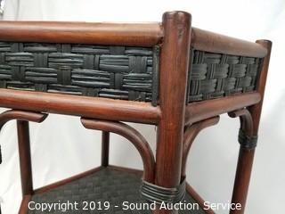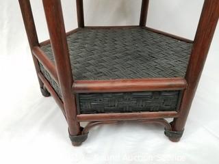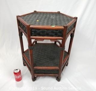 Lot #0037: Bamboo & Woven 2-Tier Hexagon Table
