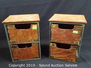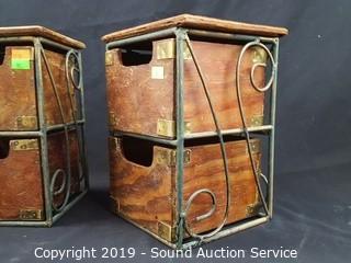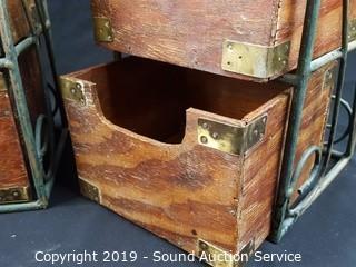 Lot #0095: Bent Wood Container & Wrought Iron/Wood Organizers