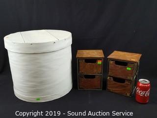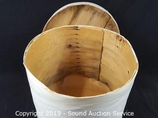 Item Description: Bent wood container is 13.5" x 15.5" dia. Organizer is 9" x 6" x 6".