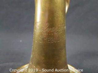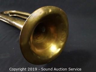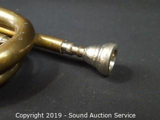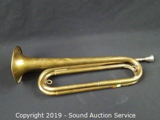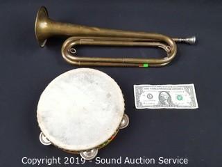 Lot #0073: Brass Silvertone Military Bugle & Tambourine