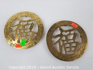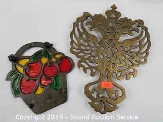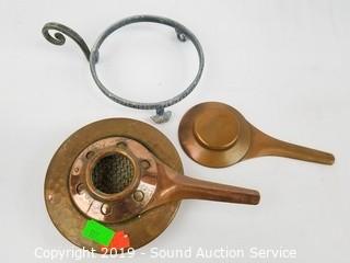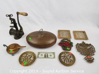 Lot #0107: Brass Trivets, Copperware & Meat Grinder
