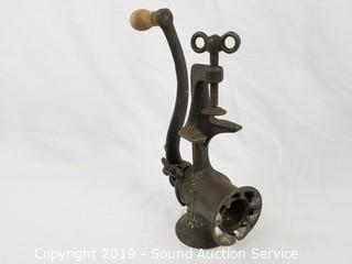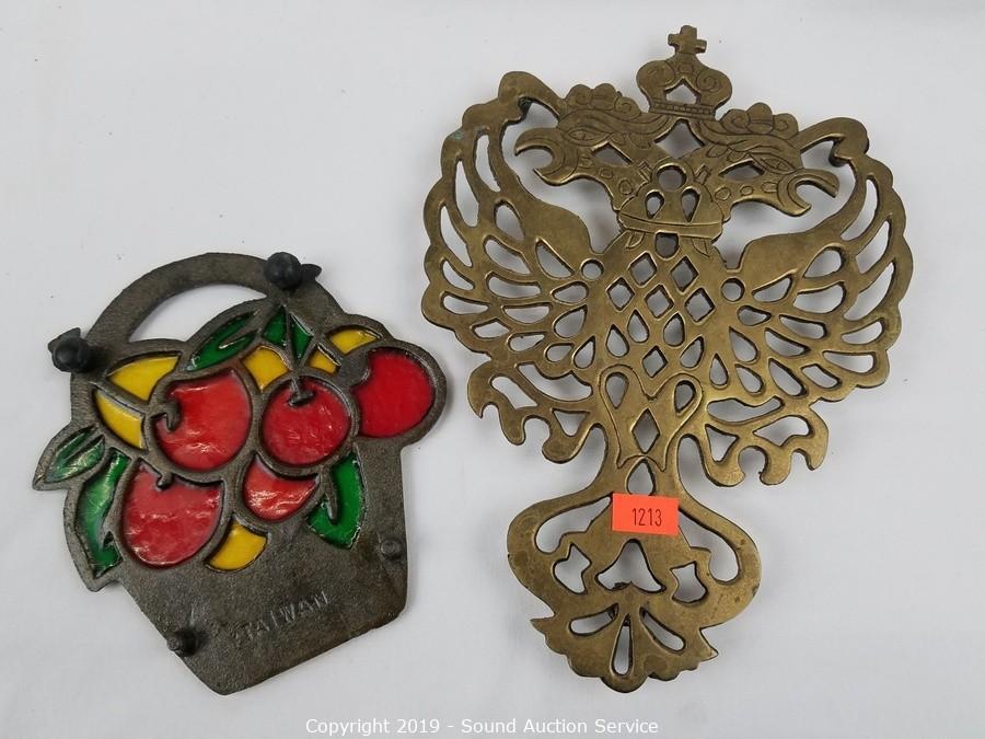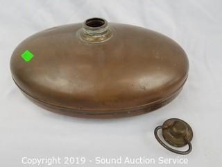 Item Description: Includes 6 brass trivets, Stockli Netstal Swiss hand crafted copper burner, hot water bottle and 1904 #21 USA meat grinder.