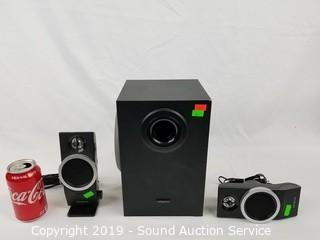Item Description: Looks like one speaker is missing its stand. Has subwoofer. All work.