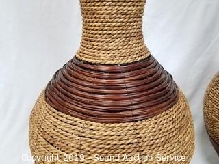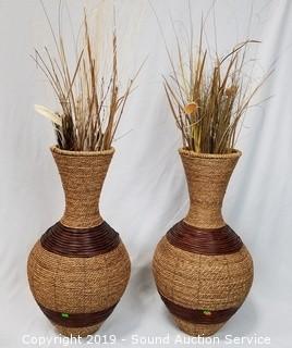 Lot #0021: Large Woven & Pottery Vases w/Reeds Decor