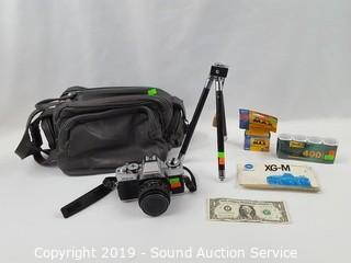 Item Description: 1981, made in Japan. When released was top of the line. Comes with owners manual, 5 new 35mm film, tripod and camera bag. MD 50mm 1:1.7 lens.