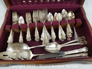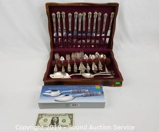 Lot #0135: Mixed Silverplate Flatware Set & Serving Pieces