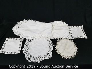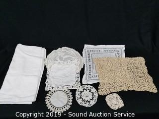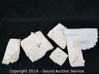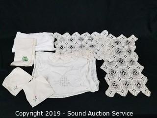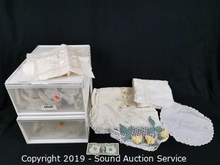 Lot #0318: Organizer w/Crocheted, Lace & Embroidered Linens