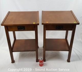 Lot #0053: Pair of 2-Tier Single Drawer Side Tables