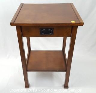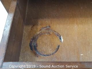 Item Description: One has a stain on the drawer and a black mark on the top, otherwise in excellent condition. Solid wood construction. 27" T x 18" W x 16" D.