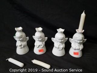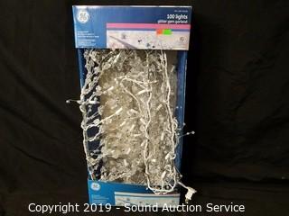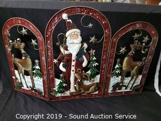 Item Description: Includes metal art Santa fireplace screen, clear glass trees, 100 light glitter gem garland, coasters and angel candle holders and decor.