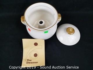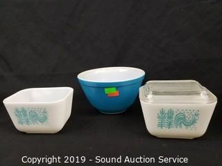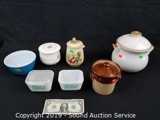 Item Description: All but 2 have lids. 2 of the Pyrex are milk glass Rooster print. Also includes a Pearson's of Chesterfield England 1810 crock with lid and "The Steamer" pottery cooker with owners manual.