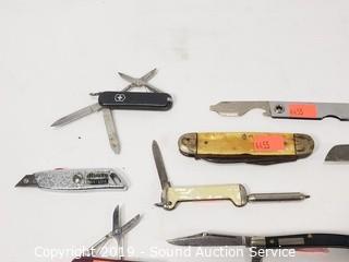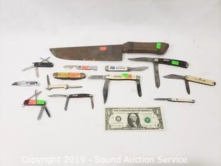 Lot #0330: Vtg. Folding Pocket Knives & Old Chef's Knife