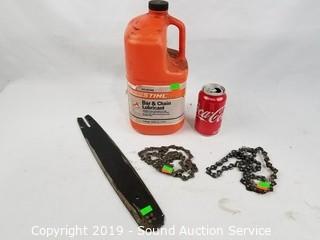 Lot #0085: 14" Chainsaw Bar w/Chains & Lubricant