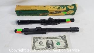 Item Description: Glenfield model 200C 4x15 scope with original box, and Weaver B-4 .22 tip-off scope.