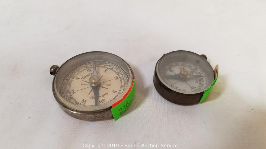 Item Description: Pioneer Compass by Pioneer Instrument Division of Bendix Aviation Corporation, Testrite Germany compass, and other Germany compass. Approx. 1-1/4" and 1-1/2" diameter, and 4" x 4-1/2" x 4-1/2" compass.