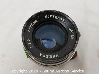 Item Description: Lens is Uneeda 1:2.5 F=35mm lens, Vivitar automatic teleconverter 3X-21, and Spiratone telxtender with case.