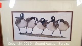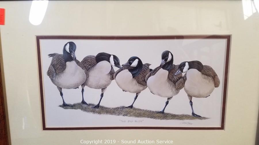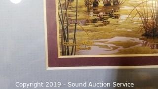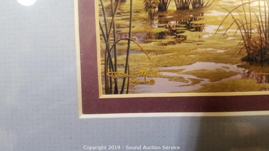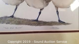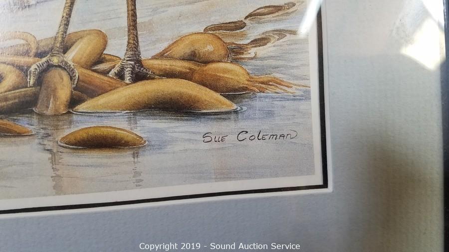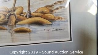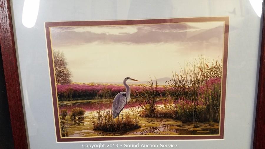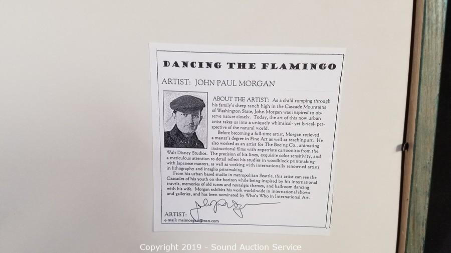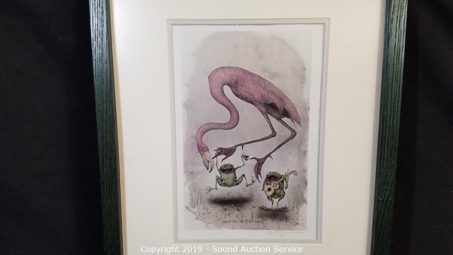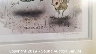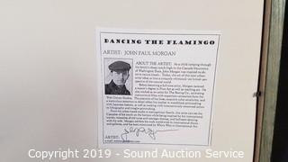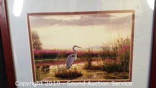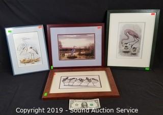 Item Description: Native Sue Coleman heron, Art LaMay "The Big Boys" print, heron print, and A/S John Paul Morgan "Dancing the Flamingo" print. Approx. 9.5" x 12" to 12" x 16".