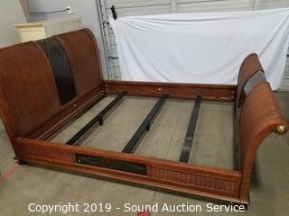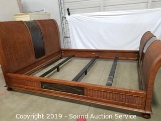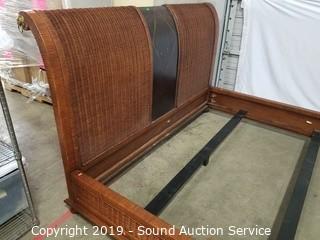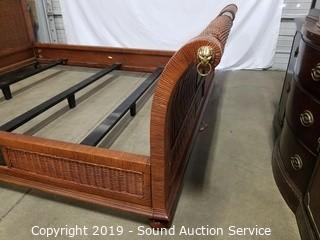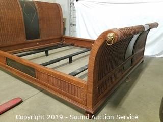Lot #0011: Drexel Heritage Wicker Leather Accent King Bed