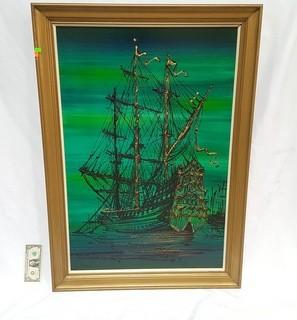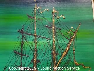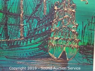Lot #0365: Original Van Grand High Relief Ship Painting