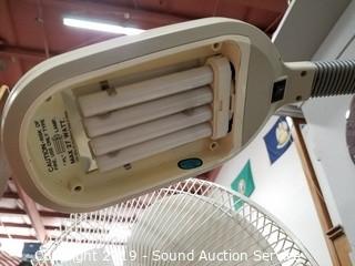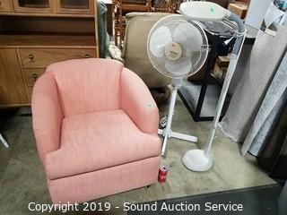 Lot #0108: Arm Chair, Verilux Task Light & Floor Fan