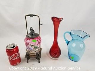 Teak Pass-Through Cabinets, Stanley Teak Vanity Dresser, Stanley Teak hutch, Cast-Iron Full Bed Frame, Queen Bed, Wicker Wove King Bed Frame, bent Wood Chairs & Shelves, Turkish Brass Brazier, Antique Spindle Wheel, White Painted Dresser, Tons of Vtg. Cameras & Equipment, Stained Glass Window Decor, Autographed Kareem Abdul Jabbar Poster, Autographed Mickey Mantle Plate, Autographed Ken Norton Boxer Card & Other Sports Memorabilia, Rugs, Collectible Dolls, Vtg. Record Albums, Various Literature, Original Artwork, Judie Bomberger Metal Art Yard Stakes, Tamaya Nautical Sextant, Ocarinas, Flutes & Much More!!!