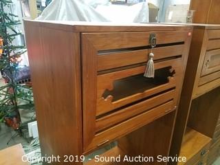 Teak Pass-Through Cabinets, Stanley Teak Vanity Dresser, Stanley Teak hutch, Cast-Iron Full Bed Frame, Queen Bed, Wicker Wove King Bed Frame, bent Wood Chairs & Shelves, Turkish Brass Brazier, Antique Spindle Wheel, White Painted Dresser, Tons of Vtg. Cameras & Equipment, Stained Glass Window Decor, Autographed Kareem Abdul Jabbar Poster, Autographed Mickey Mantle Plate, Autographed Ken Norton Boxer Card & Other Sports Memorabilia, Rugs, Collectible Dolls, Vtg. Record Albums, Various Literature, Original Artwork, Judie Bomberger Metal Art Yard Stakes, Tamaya Nautical Sextant, Ocarinas, Flutes & Much More!!!