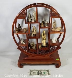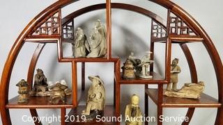 Lot #0312: Hand Crafted Pottery Asian Figures w/Display