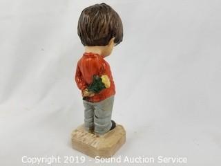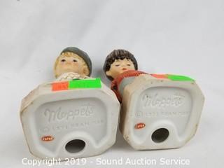 Item Description: TMK3 West Germany Hummel 21/0 "Heavenly Angel", (2) 1971 Franmar Moppets figures, and numbered ceramic figure. Approx. 4" to 6.5" H.