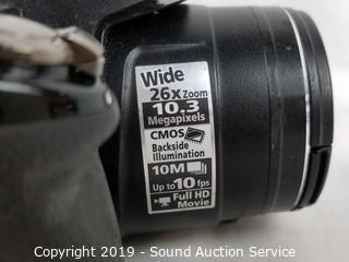 Item Description: 26x zoom, 23 megapixel. Comes with manual and camera case. Powers on.