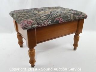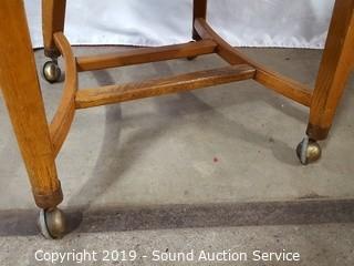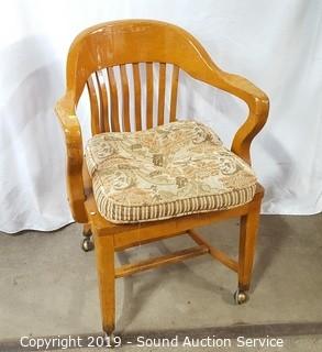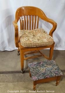 Lot #0351: Oak Rolling Arm Chair & Storage Ottoman