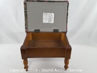 Item Description: Ottoman has lift top storage, by Powell, 10" x 11" x 15". Arm chair comes with cushion, 33" H, 24" W, 20" to seat.