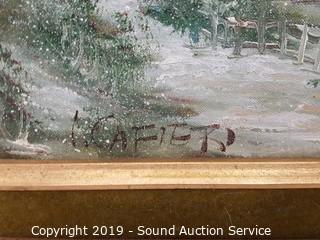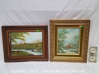 Item Description: Painted on canvas boards. By artist M. Dickson and I. Cafier. Approx. 16" x 13" and 15.5" x 13.5".