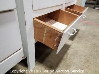 Item Description: A few small dings in the paint, otherwise in good condition. 2 lower drawers, 3 shelves. Approx. 52" H, 37.5" W, 13" D.