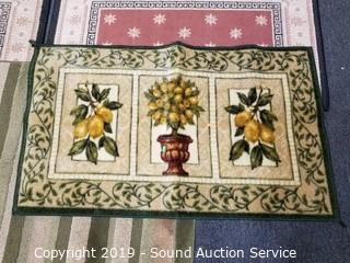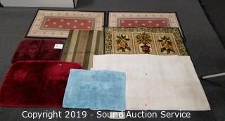 Item Description: Various sizes. Includes (2) 25" x 44" accent rugs, 30" x 45" entryway rug, 26" x 44" accent rug, NWT crimson 23" x 16" bathroom rug, 36" x 22" crimson bathroom rug, 17" x 25" Ralph Lauren bathroom rug and 27" x 48" ivory colored rug.