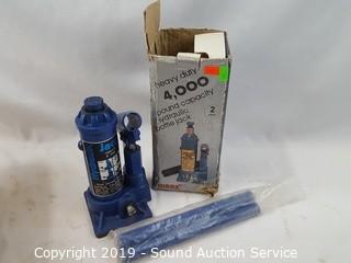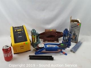 Item Description: (2) 2 ton bottle jacks, electric tire pump, foot pump, and scissor jack.