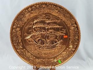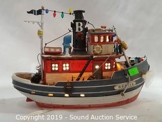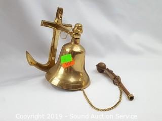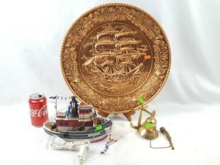 Item Description: Includes brass bell with vintage copper whistle and boat anchor mount (3" x 2"), lighted tug boat and copper 16" ship wall decor.