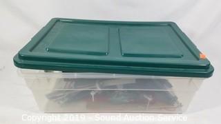 Item Description: Tote is 5" x 10.5" x 15.5". Has lid. Also comes with Oregon chainsaw blade file guide.