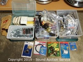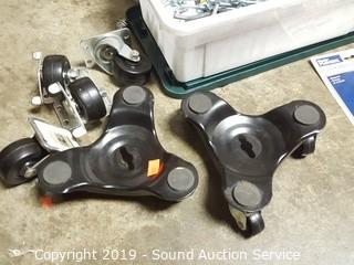 Item Description: Casters, surge protectors, plumbing and more. Totes included, largest is 12QT, 6" x 16" x 11".
