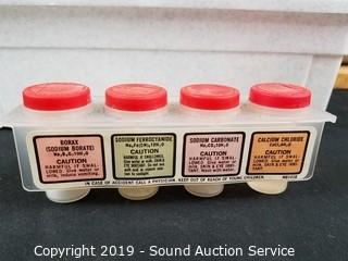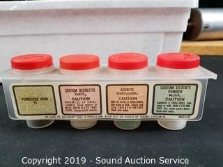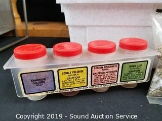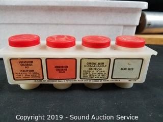 Item Description: Includes beaker or bunsen burner rack, funnels, Drielite laboratory drying unit, aluminum weighing discs, mesh basket, cylinder, steel stand, file racks, chemistry filter papers, toppers and stoppers, petri dishes, chemistry chemicals, droppers, test tube brackets and more.