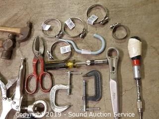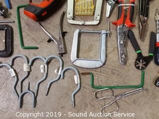 Lot #0254: Various Tools - Clamps, Snips, Hooks
