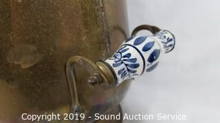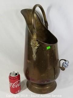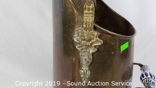 Lot #0186: Vtg. Brass Porcelain Handle Coal Scuttle
