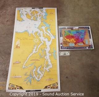 Item Description: Includes a 1975 Puget Sound map and 1989 framed Native American Tribes map (20" x 16").